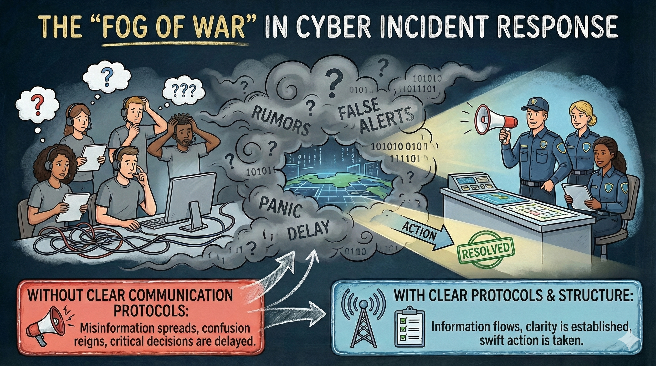 The "Fog of War" is a major challenge during a cyber crisis. Without clear communication protocols, misinformation spreads, and critical decisions are delayed.