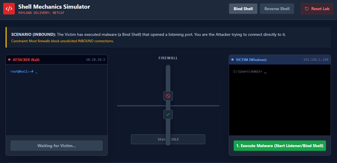 This is the standard for almost all modern malware. In a Reverse Shell, the malware on the victim's computer initiates the connection out to the attacker.