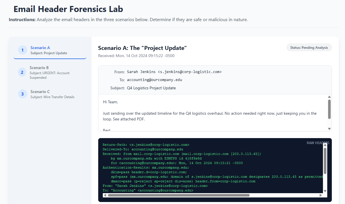 The Scenario: An Accounts Payable clerk at "Acme Corp" receives an urgent email appearing to be from her CEO, requesting an immediate payment of an overdue invoice to a new vendor. The email looks legitimate, with the CEO's correct name and email address in the "From" line. Suspicious, she forwards it to the forensic team.