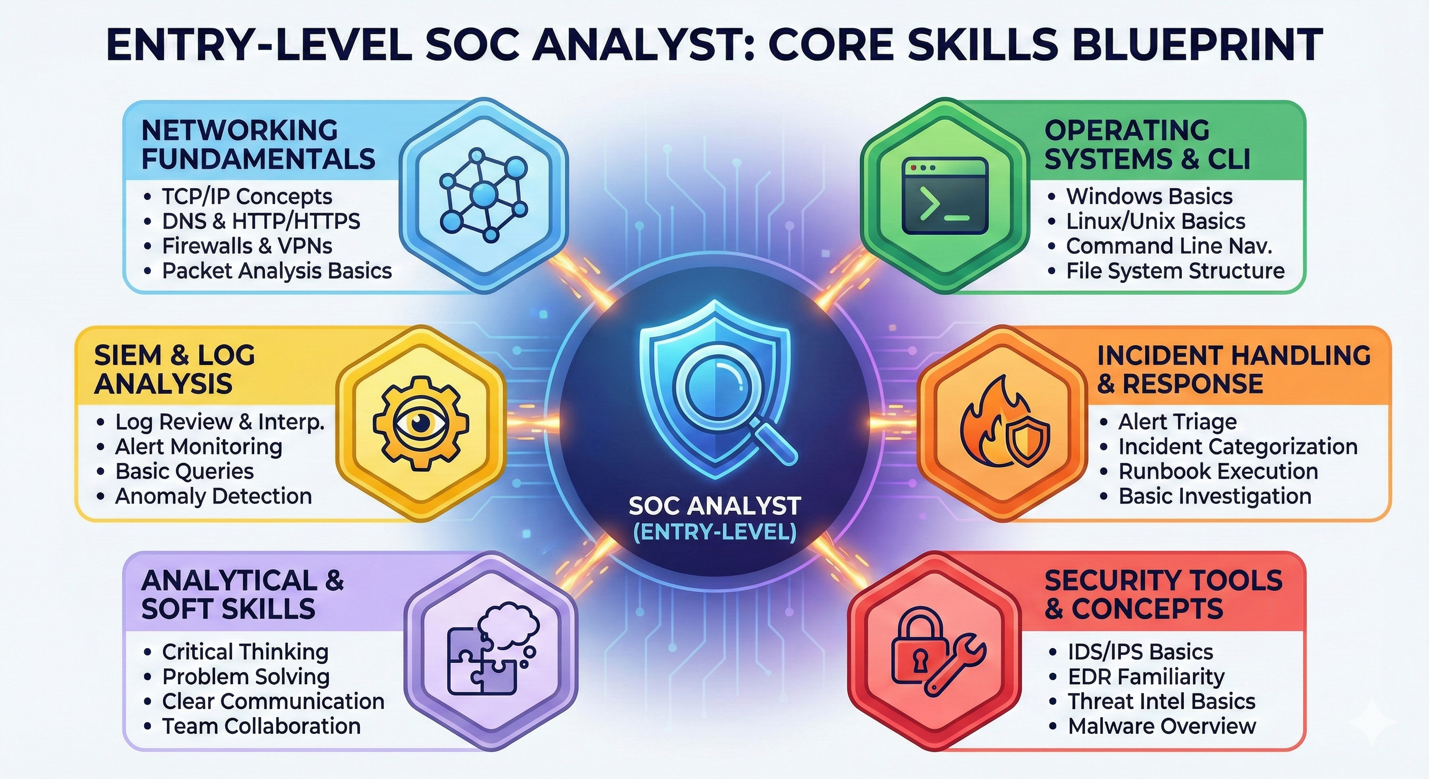 The Security Operations Center (SOC) is the frontline of defense. Blue Team professionals are the digital first responders, responsible for monitoring, detecting, and triaging threats as they happen. If you are targeting a role as a SOC Analyst or Security Engineer, your skills inventory must demonstrate the ability to see and understand network traffic and system logs.