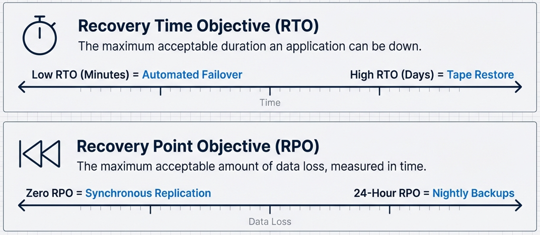 Once the assets are mapped, we must quantify the performance targets for recovery. These metrics act as the Service Level Agreement (SLA) between IT and the Business.