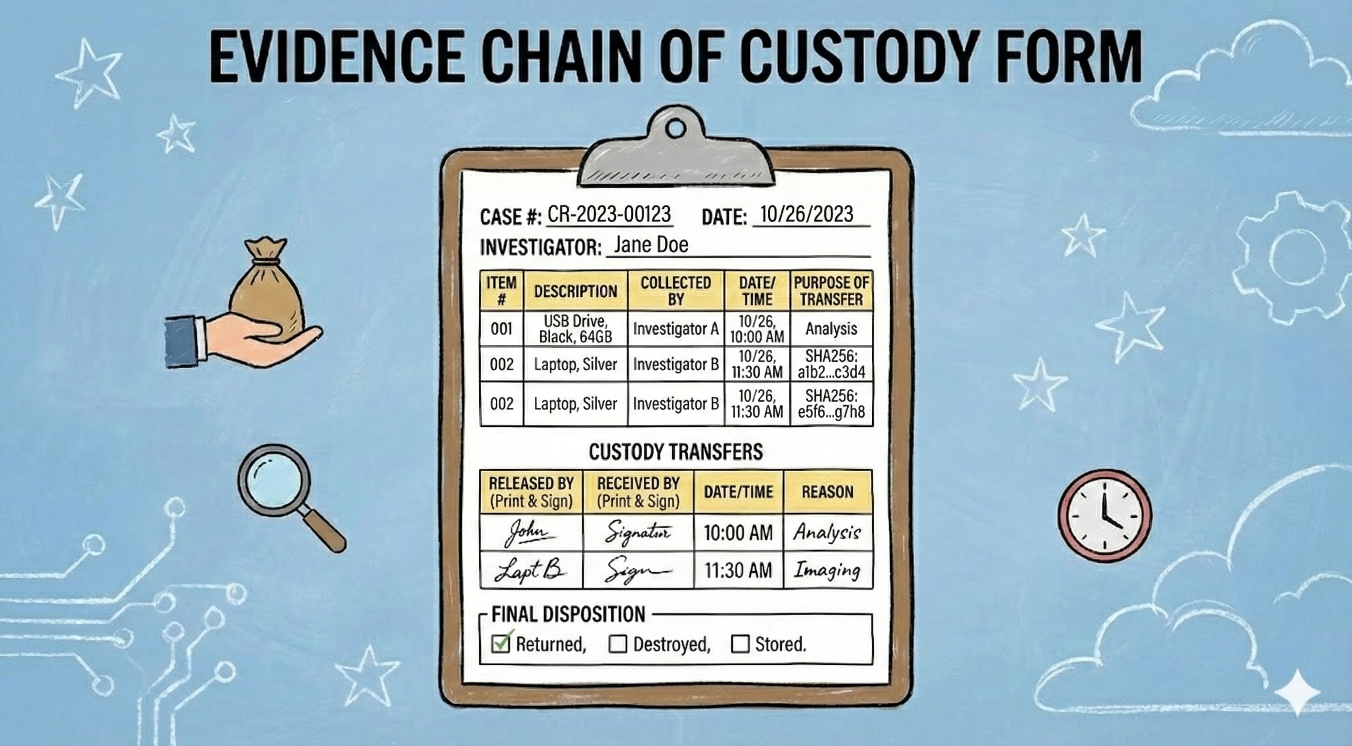 - Where it is stored (e.g., a secure, access-controlled evidence locker or digital vault).