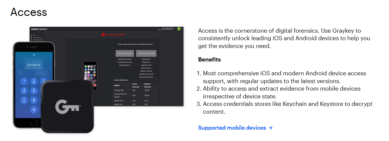 One of the most prominent tools in this space is Magnet GrayKey (formerly Grayshift).