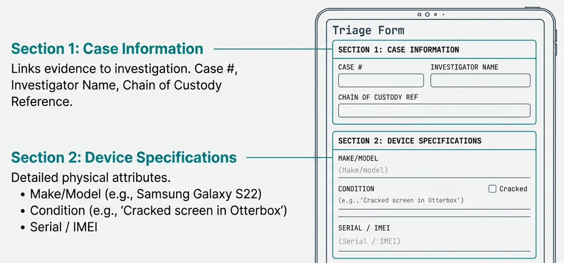 - Physical Evidence Priority: Did the device require DNA swabbing or fingerprint processing? If so, this must happen before you start pressing buttons or plugging in cables.