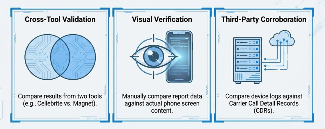- Validate forensic findings using visual verification and cross-tool analysis to ensure the accuracy and legal admissibility of extracted evidence.