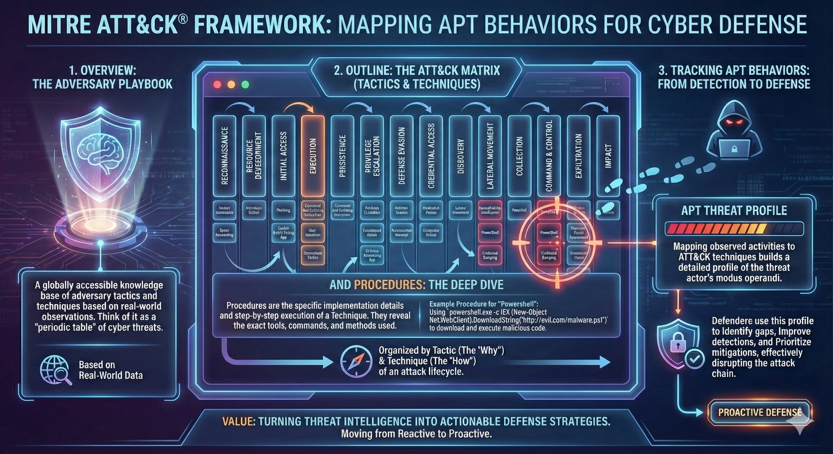 - Example: Instead of reporting "Unknown Suspect," an analyst reports: "The actor used Spearphishing (T1566) to gain access, followed by PowerShell (T1059) for execution."