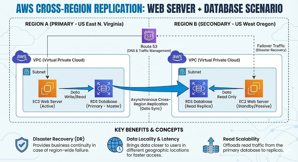 - Regions: Geographical areas (e.g., US-East). Placing a DR site in a different Region protects against massive disasters like hurricanes.