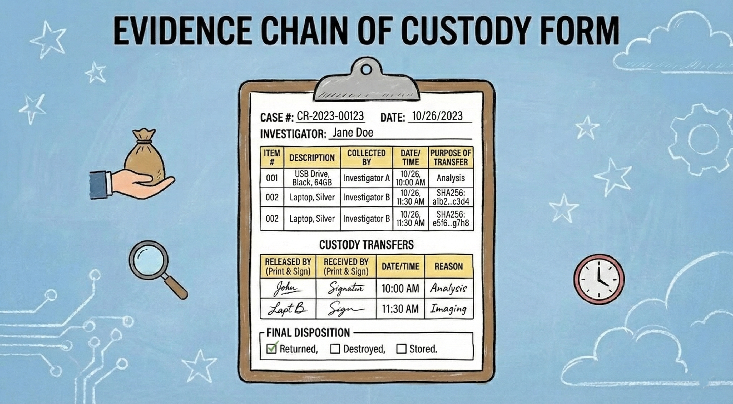 - Where it is stored (e.g., a secure, access-controlled evidence locker or digital vault).