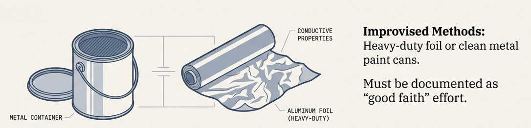 In exigent circumstances where professional equipment is unavailable, investigators have used improvised Faraday cages. Multiple layers of heavy-duty aluminum foil can block signals. Even empty, clean paint cans (metal) have been used effectively as RF shields. While not "court-certified" equipment, if documented properly, these methods demonstrate a good faith effort to preserve evidence.