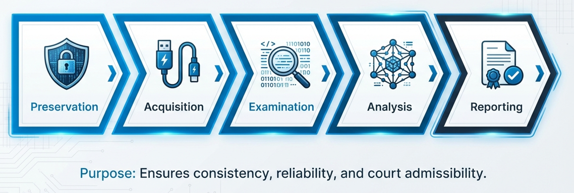 To ensure consistency and reliability, forensic examiners follow standards set by the National Institute of Standards and Technology (NIST). Specifically, NIST Special Publication 800-101 (Guidelines on Mobile Device Forensics) is the industry standard for our field.
